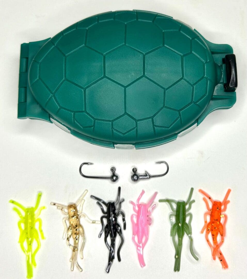 Appalachian Baits CRICKETZ BOX includes our famous “Turtle Box,” a hard case, turtle shaped, 12 compartment box with 12 individual flip-tops to keep items separated and secured, along with 60 Appalachian Baits Mountin Cricketz. The Mountin Cricketz are a unique 13/4″ inches long, soft, and flexible, which offers an outstanding alternative to fishing with real crickets. Mountin Cricketz are produced to have a generous amount of stretch and unlike some companies that soak their crickets in scent, all Appalachian Baits Mountin Cricketz have the scent infused into each cricket. These crickets float and have natural movement to mimic real-life crickets and can be fished with a jig-hook or any small hook. Appalachian Baits CRICKETZ BOX includes: 1 TURTLE BOX , two 1/32 XXX VooDoo Custom Jig Hooks, two 1/64 XXX VooDoo Custom Jig Hooks, 10 scented COAL Cricketz, 10 scented BUBBAGUM Cricketz, 10 scented FOOL’S GOLD Cricketz, 10 scented HORNYHEAD Cricketz, 10 scented OLE YELLER Cricketz, and 10 scented DILL PICKLE Cricketz.